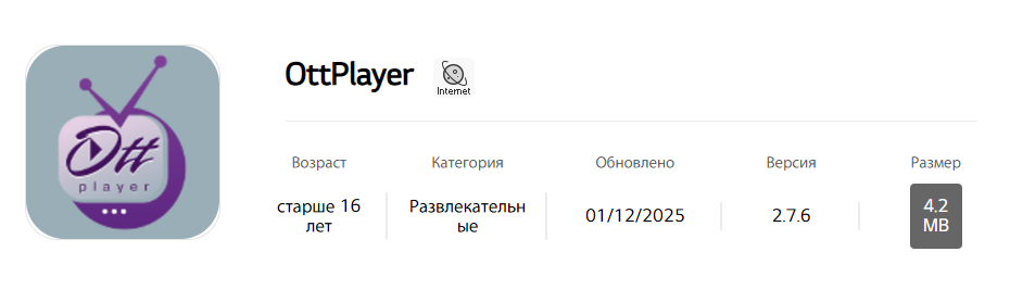 Установите OttPlayer из магазина приложений в Вашем Smart TV.