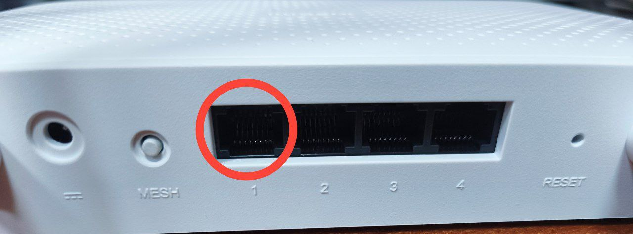 • Кабель сети MATRIX подключите в разъём роутера под номером “1” ( на фотографии обозначен красным кругом)
