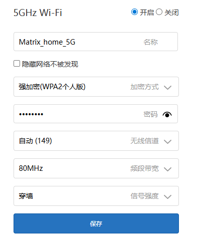 При внесении изменений появится под настройками 5Ghz сети синяя кнопка, после смены параметров необходимо нажать на неё для сохранения изменений.