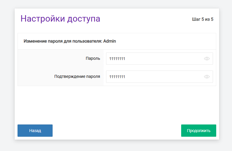 В окне ввода логина и пароля необходимо ввести следующие данные: Логин (Имя пользователя) – Admin, Пароль – Admin. Затем нажмите «Войти».
