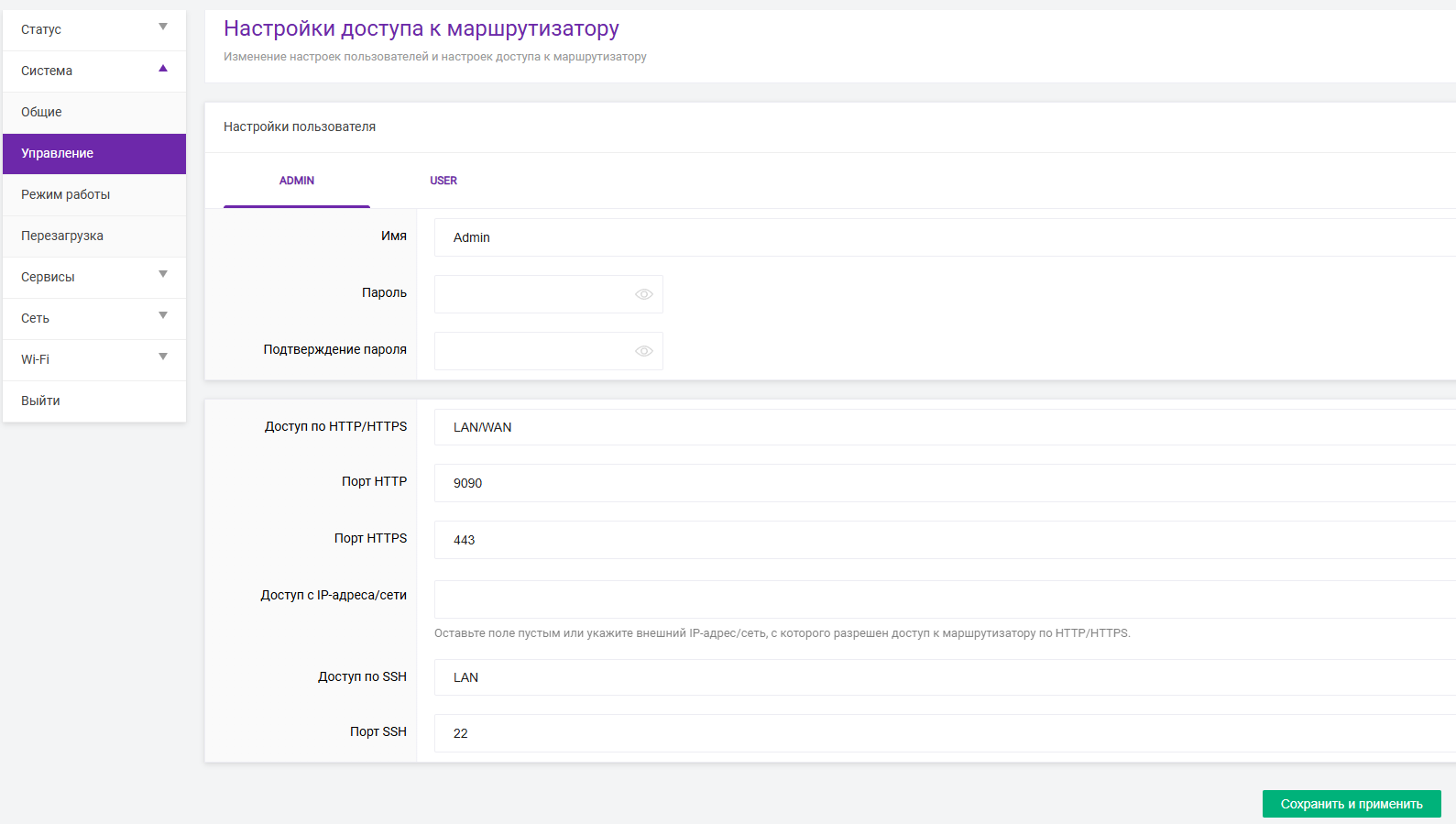 -В доступе по HTTP/HTTPS выставляем «LAN/WAN»