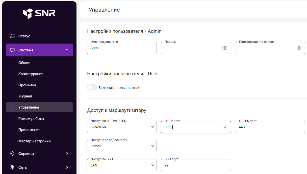 -В доступе по HTTP/HTTPS выставляем «LAN/WAN»