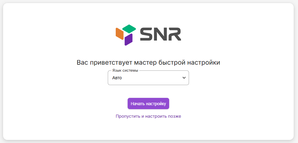Подключитесь к роутеру посредством кабеля или по Wi-Fi, используя данные от роутера (на заводских настройках, после включения роутер раздает беспроводную сеть с именем «SNR-...», полное название wi-fi сети и заводской пароль от неё можно увидеть на наклейке перевернув роутер). Также можно подключиться к wi-fi сети по QR-коду.