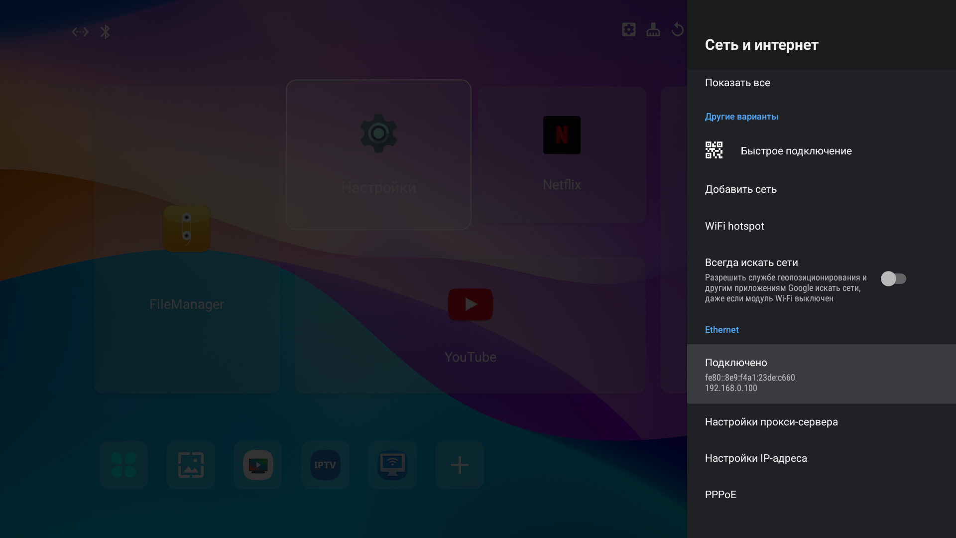 для этого подключить Ethernet-кабель к приставке в соответствующий разъем и к LAN порту роутера. В настройках увидим что приставка увидела подключение.