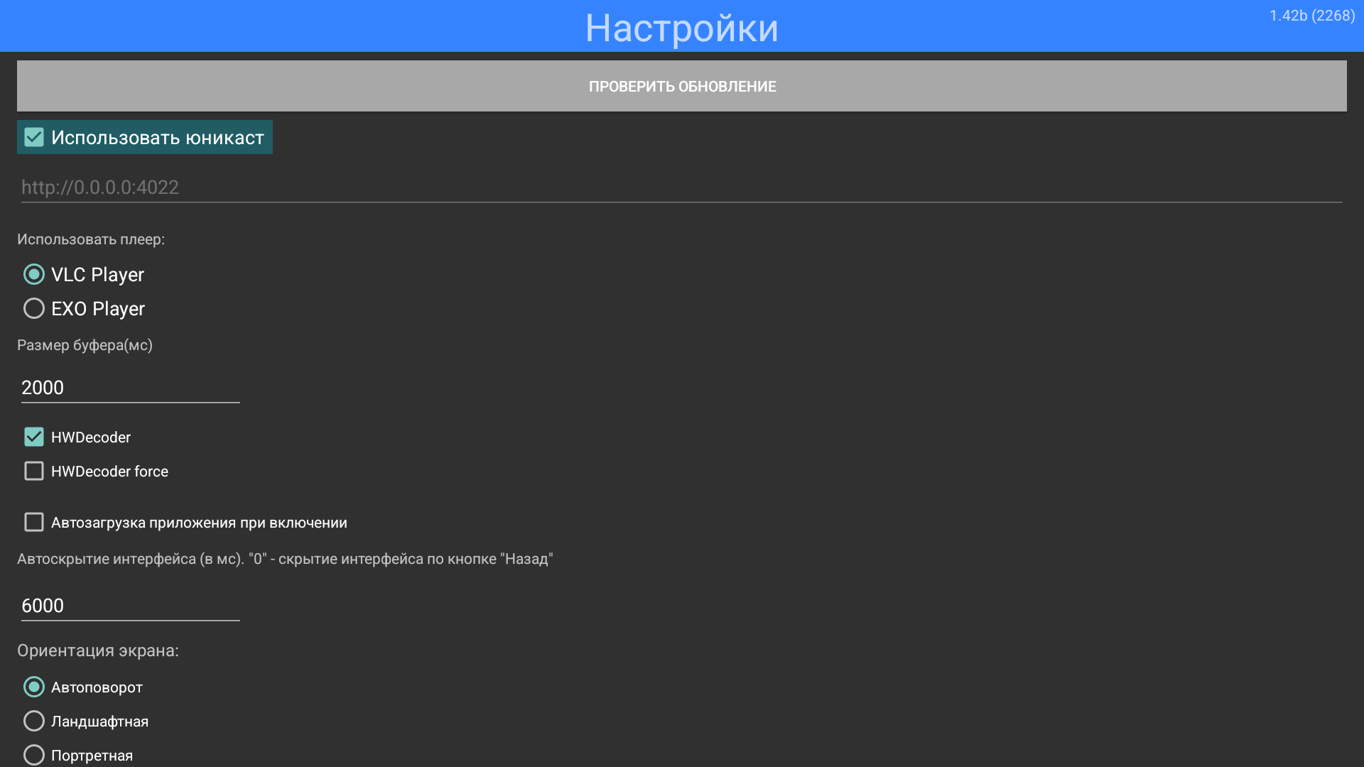 В открывшемся окне настроек должна быть установлена галочка Использовать юникаст. В строке Размер буфера (мс) должно быть установлено значение 2000.
