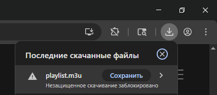 после чего в зависимости от браузера появится окошко, где мы нажимаем сохранить для скачивания плейлиста